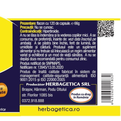 Reglează tiroida și accelerează metabolismul. 500 mcg Iod Natural per capsulă. Formă superioară naturală de Iod, extras din Fucus (algă marină brună), perfect asimilabil la nivelul glandei tiroide.