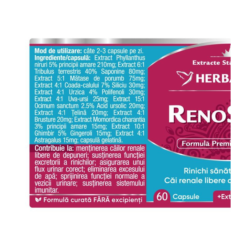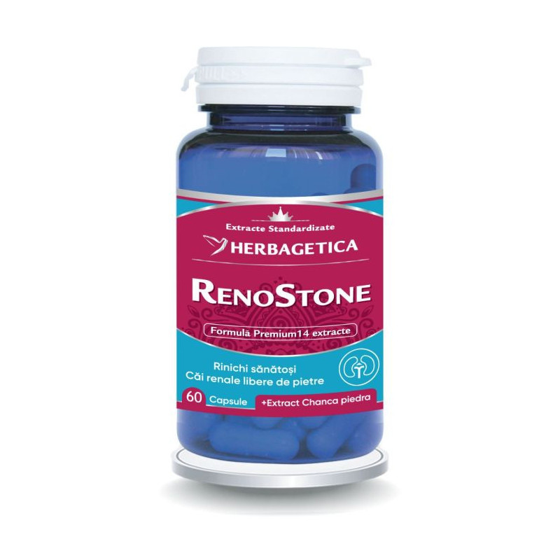 RenoStone conține o formulă concentrată cu 12 extracte fitoterapice intense care au rolul de a elimina pietrele la rinichi și de a susține detoxifierea renală. Prin 210 mg/capsulă de extract standardizat de Chanca piedra (Stone Breaker), Renostone „sparge” pietrele la rinichi și susține eliminarea acestora.