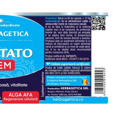 Extractul de Palmier pitic (Serenoa Repens) menține sănătea sistemului urinar și a prostatei, crește vigoarea sexuală și susține buna funcționare a glandei tiroide. Alga AFA este cel mai puternic stimulator vegetal de Celule Stem si stimulează producția de celule STEM datorită numeroaselor substanţe active din compoziţie (12 vitamine, 27 de minerale naturale şi 11 pigmenţi naturali precursori ai vitaminelor, enzimelor şi coenzimelor), care sunt uşor absorbite de organism.