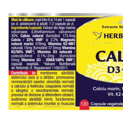 Calciu+ Vitamina D3 cu Vitamina K2 are în compoziția sa vitamine și minerale rezultate din surse 100% naturale, fără ingrediente de sinteză. Proveniența naturală a Calciului Organic, obținut din alge marine calcaroase, și a celor două vitamine D3 și K2, asigură o absorbție ridicată și o eficiență crescută a produsului.
