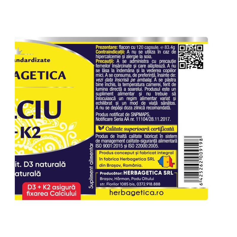 Formulă 100% naturală, susține oasele, mușchii, sistemul nervos, imunitatea.