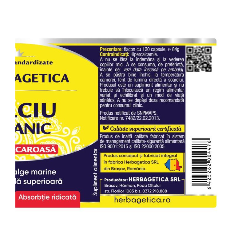 Calciul este un mineral esențial pentru sănătatea oaselor și a dinților, dar și pentru buna funcționare a inimii, a sistemului nervos și a musculaturii. Suplimentul alimentar Calciu Organic de la Herbagetica reprezintă o sursă naturală și eficientă de calciu, fiind obținut dintr-o formă organică ce poate fi ușor absorbită de organism.
