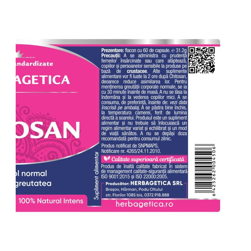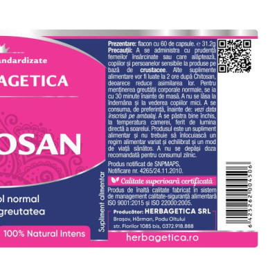 Din punct de vedere chimic, chitosanul este o polizaharidă, extrasă din carapacea crustaceelor printr-un proces numit diacetilare, polizaharidă cu efecte asupra sănătății extrem de complexe. Până în prezent este singura substanță naturală cunoscută ce conţine fibre active cu sarcina pozitiv-alcalină, având funcții similare colagenului (substanță cu efect întineritor, cu proprietăţi benefice asupra pielii, articulațiilor, prostatei, mușchilor), dar și a fibrelor vegetale (substanțe nedigerabile, care absorb grăsimile şi detoxifică).