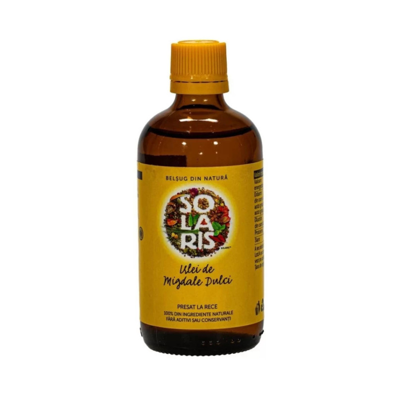 Uleiul de migdale dulci presat la rece este bogat in vitaminele E, A, B7, antioxidanti si acizi grasi nesaturati, compusi esentiali pentru sanatatea si frumusetea pielii si parului. Recomandam folosirea uleiului de migdale dulci pentru un par matasos si o piele catifelata. Uleiul de migdale asigura lipidele necesare bunei functionari a stratului hidrolipidic al pielii. Hidrateaza si hraneste pielea, fiind ideala utilizarea uleiului de migdale dulci pentru ten, dar si pentru corp. Atenueaza cearcanele si netezeste ridurile. Previne imbatranirea prematura a pielii si vergeturile datorate sarcinii.