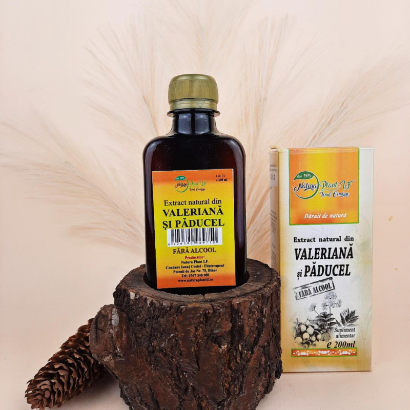 -soluție hidroglicerică cu glicerină vegetală- Valeriana officinalis/Valeriană -rădăcini -20%- Crataegus monogyna/Păducel frunze și flori -20%